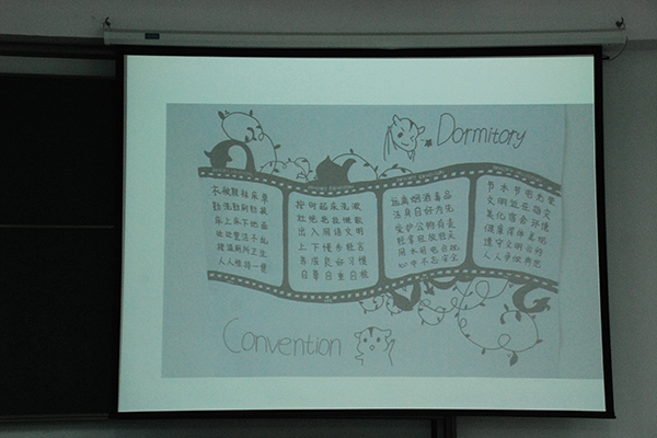 本次比赛由评委观赏各寝室制作的PPT并进行打分来完成筛选与抉择出参加决赛寝室名单。各寝室上交的PPT主要包括手抄报,寝室公约文本,寝室照片等内容。