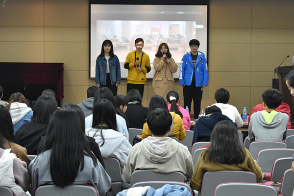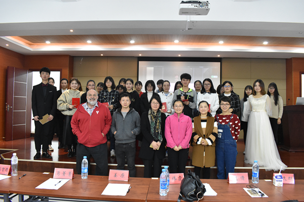 11月28日晚六点半,外国语分院主办的第十一届外文配音大赛决赛在七教209教室正式拉开帷幕。本次比赛我们有幸邀请到了外文配音大赛指导老师商伟霞老师、外国语分院大学外语教学部主任赵倩老师、外国语分院日语专业副主任葛菁菁老师、外国语分院英语专业部姜原老师、外国语分院英语视听授课教师沈逸群老师以及外国语分院英语外教David老师和外国语分院日语外教谷川智德老师担任此次大赛评委。本次比赛由唐淑婷、朱嘉俊同学担任主持。