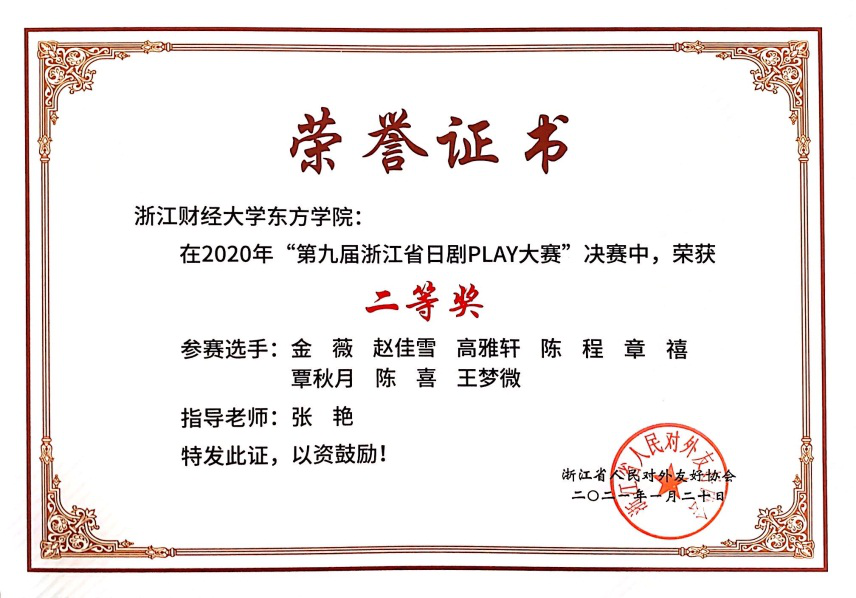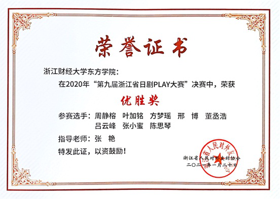 3044永利学子在“第九届浙江省日剧play大赛”中获奖