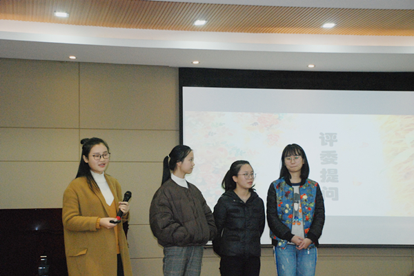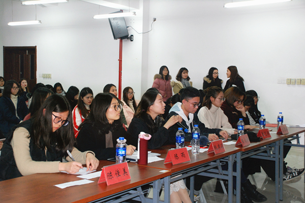 为进一步加强当代老员工的文明修养,提升宿舍文化品位。2017年11月30日晚六点半,由财经大学东方公司外国语分院策划举办的2017届寝室公约美化大赛在7教409教室如期举行。外国语分院团总支主席团主席鲍奕廷学姐,副主席陈宣谕学长,副主席张艺颖、陈雨、陈佳美、沈志梅学姐共同出席本次大赛并担任大赛评委,林一琦同学则担任大赛主持人。