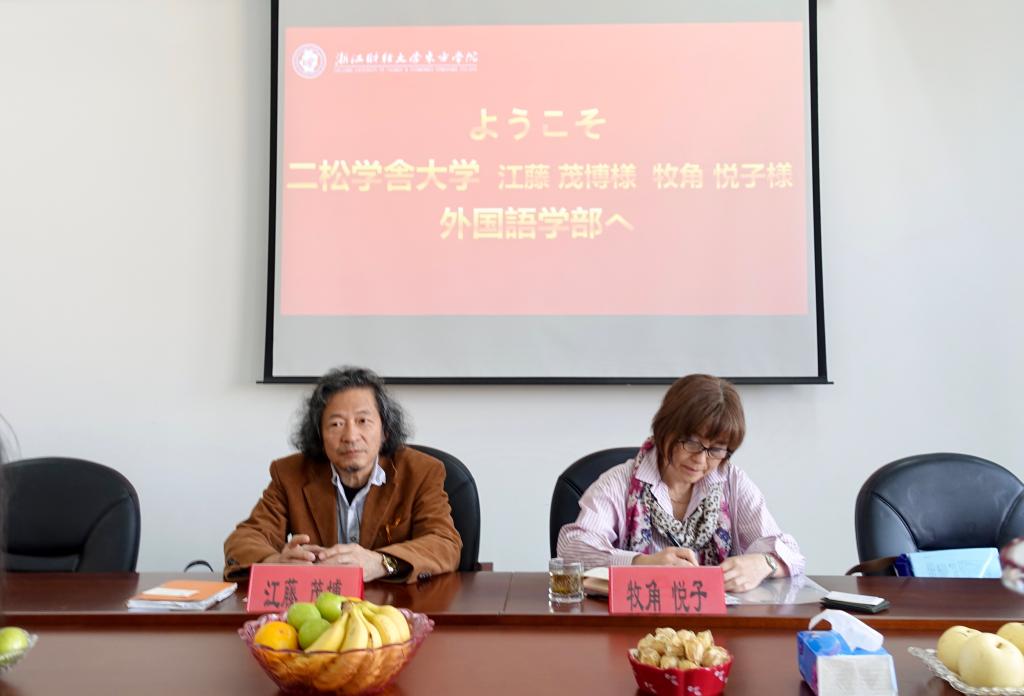 11月4日,日本二松学舍大学董事长江藤茂博一行访问我分院,外国语分院副经理周春霞、国际合作交流中心副部长姚莉热情接待了代表团一行,双方就友好交流合作项目相关事宜进行了协商会谈。外国语分院李艳萍、方凌飞陪同出席。