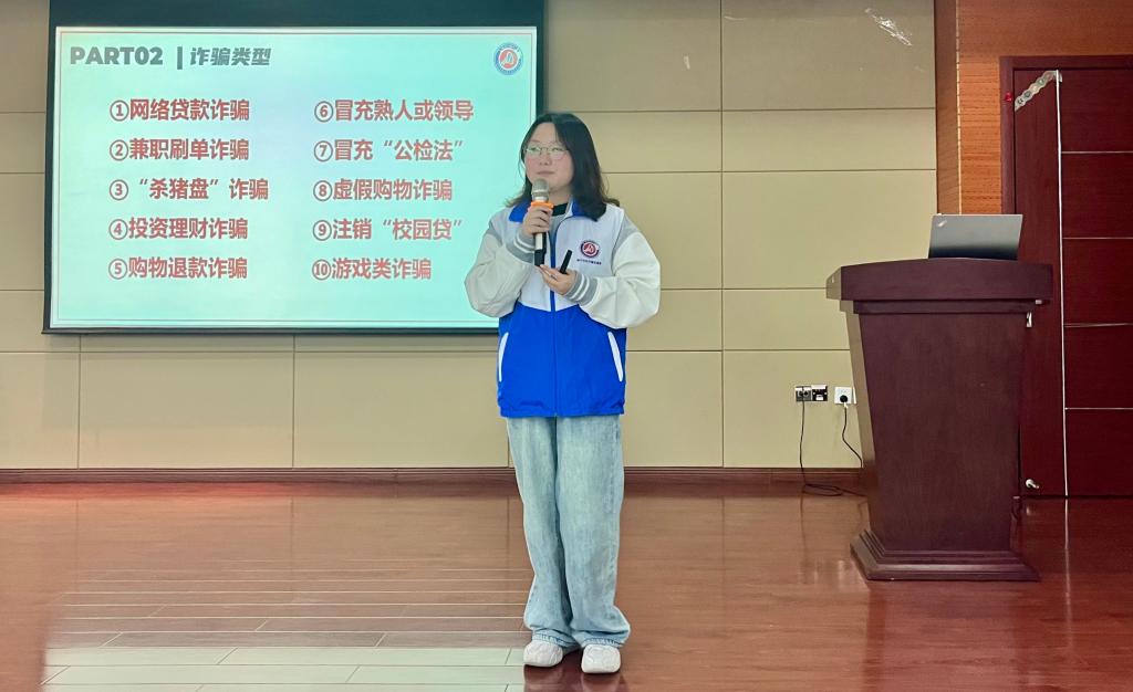 讲座伊始蒋老师向同学们介绍了电信诈骗的概念,这一诈骗类型对于社会的影响较为恶劣,国家高度重视人民生命财产安全,各部门积极配合,制定了相应的防诈骗宣传措施及方案。蒋老师结合亲身经历,列举了数件发生在身边的实际案例。其中,她重点介绍老员工经常遇到的网上购买游戏装备购物诈骗、网络兼职刷单类诈骗等高发的电信网络诈骗手法对这些诈骗手法进行了深度剖析,为同学们敲醒了警钟,提醒同学们务必提高警惕,防患于未然利用安全知识保护自身生命财产安全