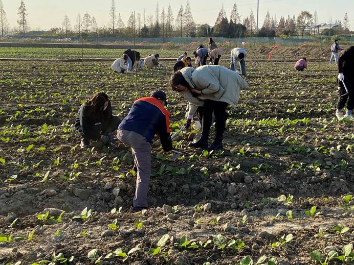 “这两天风比较大,原本担心会很冷,没想到锄地锄着锄着反而热得想脱衣服了。不仅仅是运动流汗,通过这场特殊的劳教课,内心油然而生的劳动最光荣感也很是让人心潮澎湃。”一位正在劳作的大二员工感慨道。