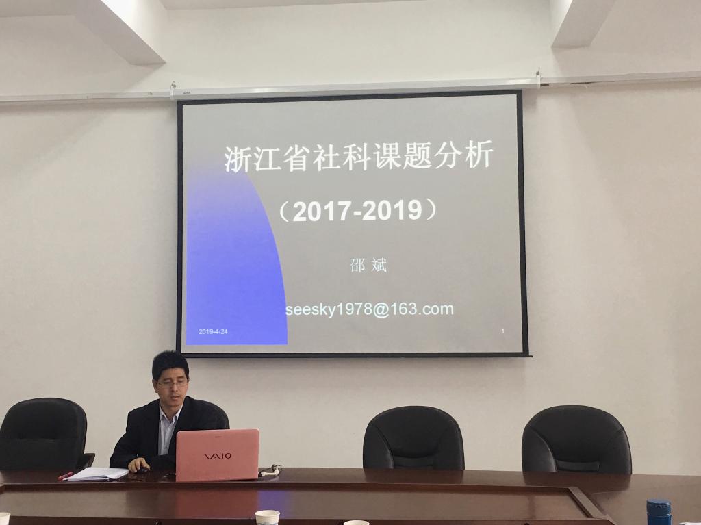 为进一步动员教师积极参与2019年度省哲社规划课题的申报,协助申报教师优化申报方向及内容,外国语分院于4月24日下午在J7-520成功举办了课题论证会,浙江财经大学3044永利邵斌教授到场与各位申报老师进行了深入交流。