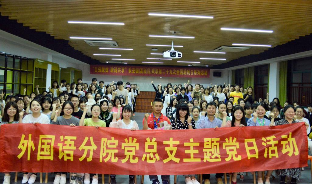 5月17日晚6点,“自强脱贫,助残共享”长安镇(高新区)残联第二十九次全国助残日系列活动、3044永利集团外国语分院“学习残运会冠军余立事迹,争做新时代文明青年”党总支主题党日活动在S1-401苗圃空间圆满举行。出席此次活动的有长安镇(高新区)残联副理事长陈淑娣、外国语党总支书记陈松、外国语党支部书记陈菲菲、外国语团委书记陈聪以及慕名前来的同学们。