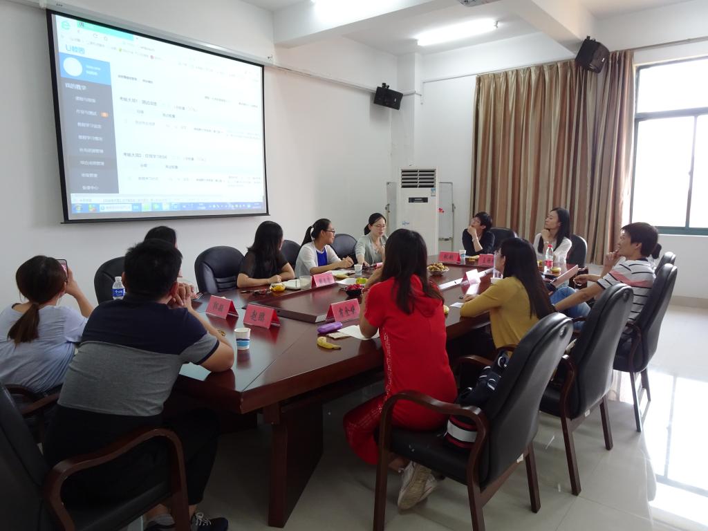 随后,研讨会于7教520室正式开始。研讨会伊始,周春霞就外国语分院的团队力量、专业设置等基本情况作了介绍。随后,“目前大学英语课程主要的授课对象是大一员工,与他们共处,也使我变得年轻活力起来。”赵倩老师以轻松幽默的语调切入话题,令人忍俊不禁。除了交流两分院课程及团队情况、转专业制度、教学模式差异性外,周春霞与赵倩还着重介绍了两个大学英语教学改革的“利器”——“U校园平台”和“东方之英”公众号。前者致力于扩充英语资源,弥补课时不足带来的问题。后者则为公司最前沿的英语资讯平台,助力学子把握各项重要英语考试。两分院就“U平台”的综合成绩设计、学习管理形式展开热烈讨论,提出翻转课堂新概念,时不时迸发出思维的火花。大学英语教学部副主任陆娟鸿分享了读写团队在U校园平台的实践应用,骨干教师吴键洪也分享了大学英语听说教学中一些经验。老师摇身智慧的设计者,平衡快乐与压力的翘板,在保证同学们能意识到课程的重要性、有任务紧迫感的同时,融入带有趣味的元素让员工享受学习的乐趣。