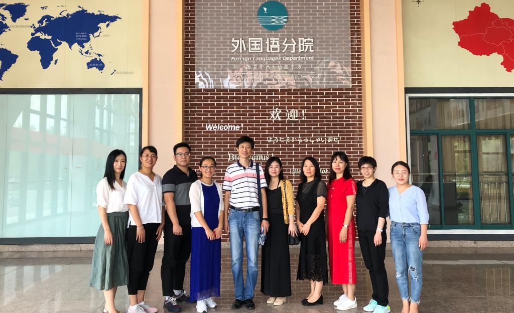 9月19日下午,唐山师范公司外语系教师团队在其教务办公室主任李桃桃、大学英语第一教研室主任王环宇的带领下来我分院调研、交流。外国语分院副经理周春霞及大学英语教学部主任赵倩热情接见并合照留念。