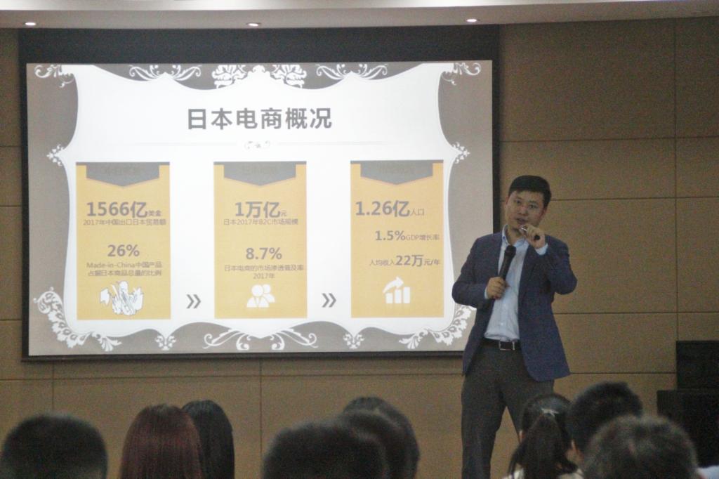 讲座伊始,吴铁冰老师就个人信息作了一番详细介绍。吴铁冰,1980年出生,现任杭州杰恩西网路技术有限公司CEO。他谈到自己在阿里巴巴公司近10年的工作生涯中,曾做过网站运营、市场推广、营销策划等工作,更有过阿里巴巴直销销售的工作经历。吴老师还带过团队,搞过策划,属于新生代的电商复合型人才。目前,吴老师投身于跨境电商的创业大潮中,所创立的“日贸通”专注于中日电商,是目前国内规模最大的对日出口电商平台。