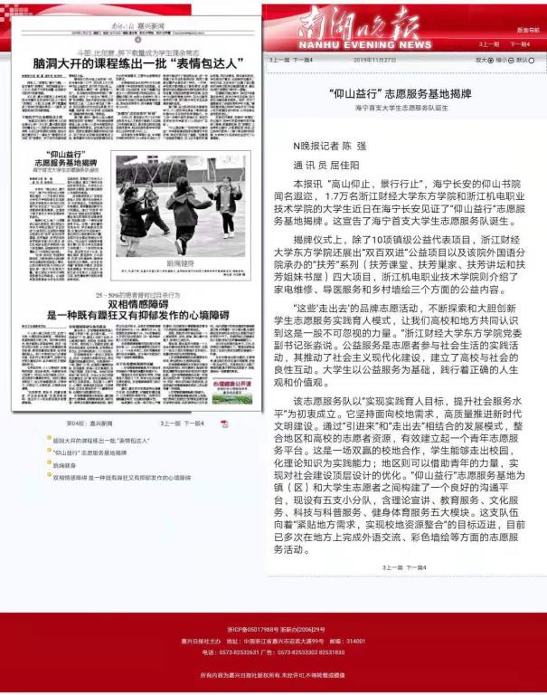 揭牌仪式上,除了10项镇级公益代表项目,3044永利集团还展出“双百双进”公益项目以及该院外国语分院承办的“扶芳”系列(扶芳课堂、扶芳巢家、扶芳讲坛和扶芳姐妹书屋)四大项目,浙江机电职业技术公司则介绍了家电维修、导医服务和乡村墙绘三个方面的公益内容。