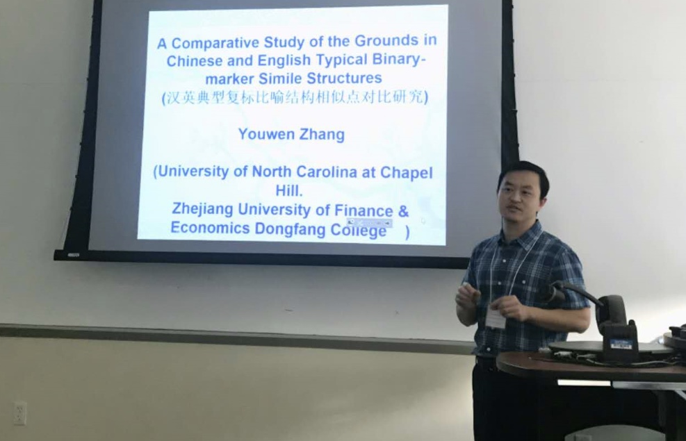 会议期间,张友文老师宣读了论文“A Comparative Study of the Ground in Chinese and English Typical Binary-mark Simile Structure”,并与参会学者进行了热烈讨论。