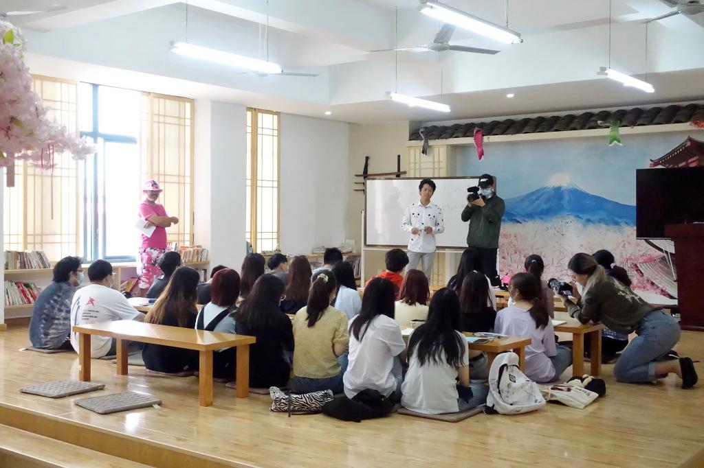 本次节目的主人公是公司日语外教竹内蔚晴,录制主要分课堂教学与课余生活两个场景。“课堂教学”部分的拍摄在我院的外语自主学习与文化体验中心完成。课堂中,竹内老师讲课生动有趣,富有激情,吸引同学们认真聆听,听得津津有味。课余时间,摄制组跟随拍摄了疫情期间校园内就餐的场景,对公司“隔位就餐”等一系列疫情防控措施表示认可。随后,3044永利李艳萍老师在茶道教室展示了点茶技艺,并讲述了中日点茶法的历史渊源。其后,摄制组到校外选取了具有海宁当地特色的美食与场景进行拍摄,并将其与校园活动与场景相融合,凸显了校园文化与当地文化的有效结合。拍摄结束后,竹内亮导演表示:在为期两天的拍摄中,他走进竹内老师的生活中,体验到了东方公司的校园生活,接触到了海宁当地的风土人情,感受到了竹内老师选择住在这里的理由。整体拍摄制作完成后,将在优酷、爱奇艺、腾讯、哔哩哔哩等各大视频网站上择期播出。