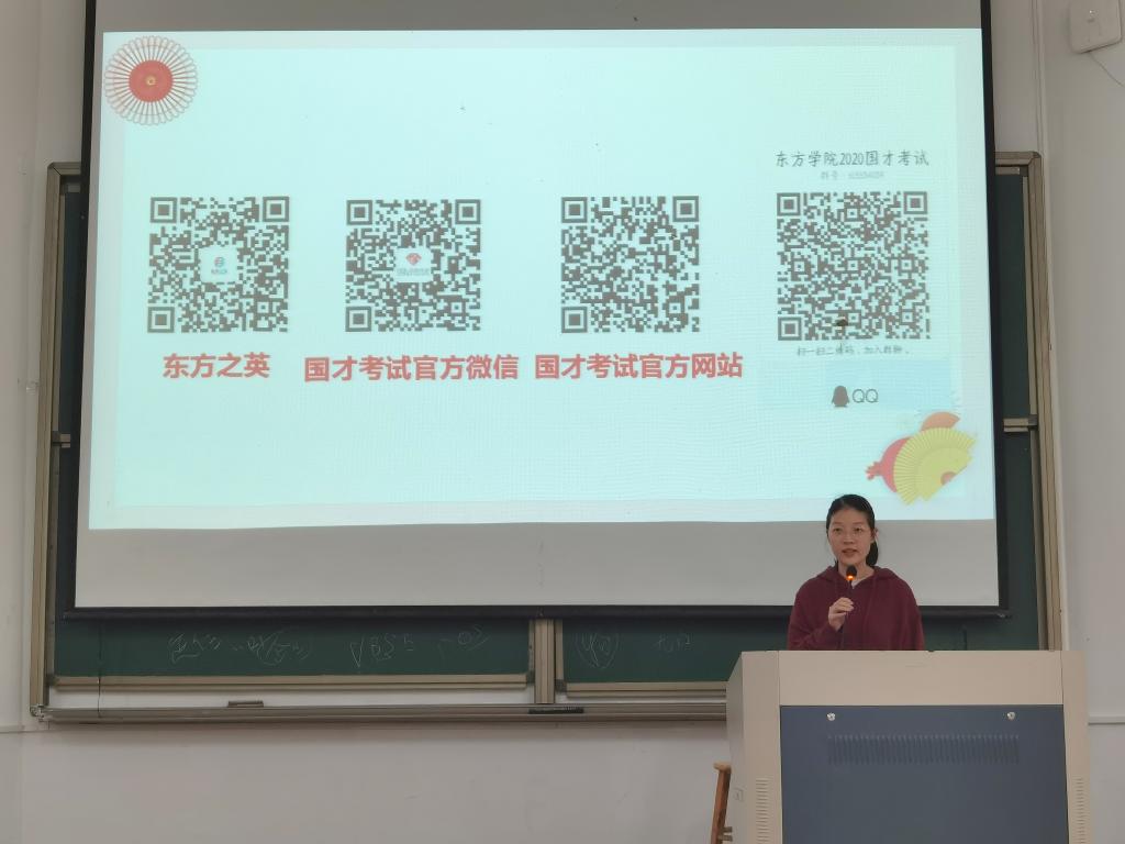 来自法学专业的优秀考生代表陈莹莹,向在场同学们分享了自己的备考心得。她以自己的亲身经历告诉大家:不要错过任何一个提升自己的机会,多参加考试,在备考中摸索适合自己的学习方式,从而达到提升自我的目的。同时,她还表示:提升英语能力,必须平时下功夫,注重日积月累,在不懈的坚持下,终有一天会让你眼前一亮。