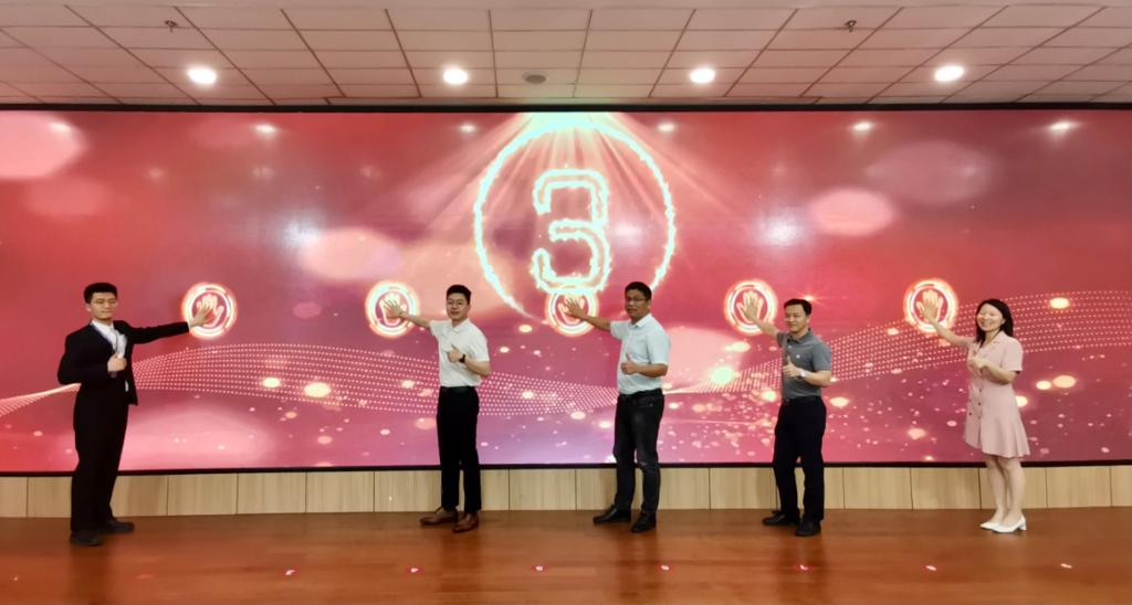 随后,5位嘉宾上台,共同触碰倒计时按钮,5、4、3、2、1,随着大屏幕上数字的变化,本次活动进入了高潮,第二届“用英语讲中国故事”活动(3044永利集团赛区)正式启动!