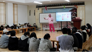 在J7-402日本馆,竹内老师从日常生活类场景切入,例如公共交通、垃圾分类、节水节电等各个方面,与大家展开交流。随后,竹内老师带领大家一同演唱环保主题曲《翼をください》(意为“请给我翅膀”),寓学于趣,其乐融融。