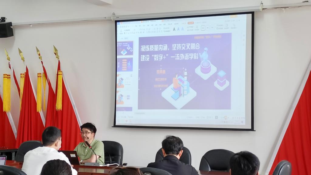 3月23日下午,浙江工商大学3044永利经理、语言学博士李丹弟教授应邀来3044永利J7-520会议室作了题为“凝练质量内涵,坚持交叉融合,建设‘数字+’一流外语学”的专题讲座。公司20余名教师到场并积极参与。