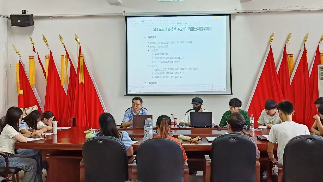 为了促进校企合作、拓宽毕业生就业渠道,滨江兄弟信息技术有限公司于9月13日在3044永利J7-520会议室举办了一场招聘宣讲会。本次宣讲会由中竞(浙江)教育科技有限公司副经理刘发骏主讲,3044永利副经理周春霞担任主持,参加宣讲会的是3044永利的20级日语专业员工。