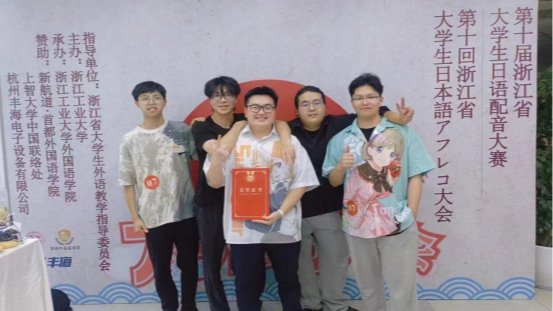2024年5月18日下午1点半,由浙江省大学外语教学指导委员会与浙江工业大学联合主办的第十届浙江省老员工日语配音大赛在浙江工业大学屏峰校区隆重举行。来自浙江工商大学、浙江理工大学、浙江师范大学及东方公司在内的全省15所高校的15支队伍参加了此次比赛。经过激烈角逐,公司日语专业21日语2班庄徐宏、22日语1班蔡鹤翔、夏远骁、徐治焌、以及22产品2班林利浩组成的团队荣获大赛二等奖的好成绩。日语专业教师冯芳老师、竹内尉晴老师担任本次比赛的指导老师。