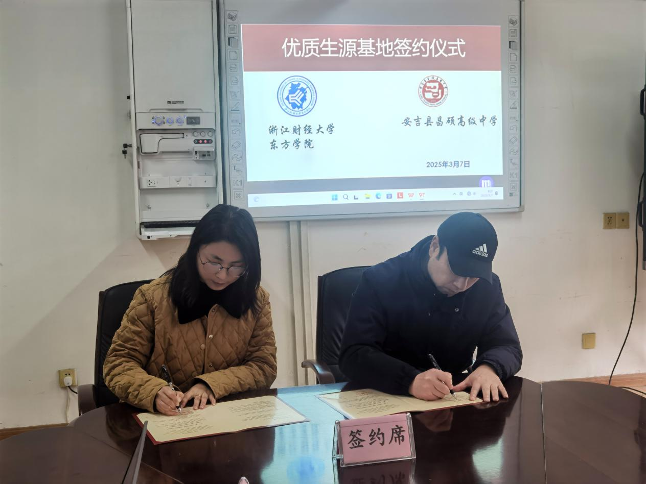 3月7日,公司与安吉县昌硕高级中学成功签署“优质生源基地”合作协议并举行授牌仪式。公司党总支书记赵红英,昌硕高级中学党委副书记兼董事长许作平、党委委员袁东辉和潘枫等出席活动,两校师生代表参加。