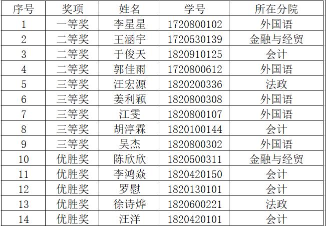 公司第十一届老员工英语演讲竞赛在公司相关部门的组织动员和员工的积极参与下,已圆满结束,现公布获奖名单。