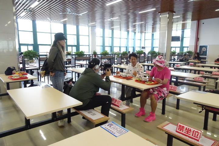 课堂中,竹内老师讲课生动有趣,富有激情,吸引同学们认真聆听,听得津津有味。课余时间,摄制组跟随拍摄了疫情期间校园内就餐的场景,对公司“隔位就餐”等一系列疫情防控措施表示认可。