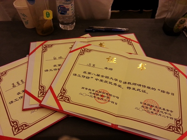 公司老师喜获第八届全国大学日语教师研修班的“综合日语工作坊”教案设计优秀奖