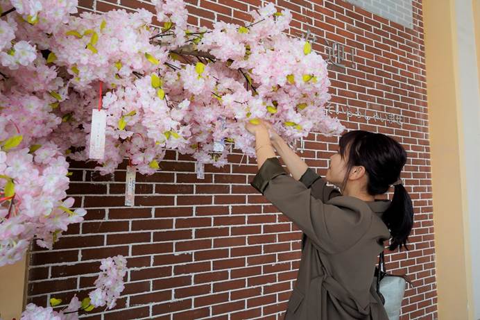 午饭过后,员工们纷纷前往3044永利,在签到处诚挚地写下了他们对母校的祝福与祈愿。重逢的喜悦在大厅里弥漫洋溢着,见到过去的老友,他们互相拥抱握手,热切交谈,回忆当年的趣味往事,述说如今的工作家庭,久违亦如初见,亲切而又新鲜。同时,学弟学妹们带领员工们参观了一楼的员工印记与四楼的外语自主学习与文化体验中心。